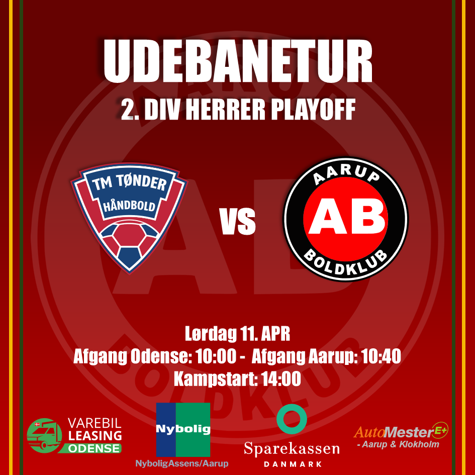 📅 Playoffkampen er programlagt til lørdag den 11/4 kl 14, og bussen kører fra Aarup Fritidscenter 10:40 om formiddagen.